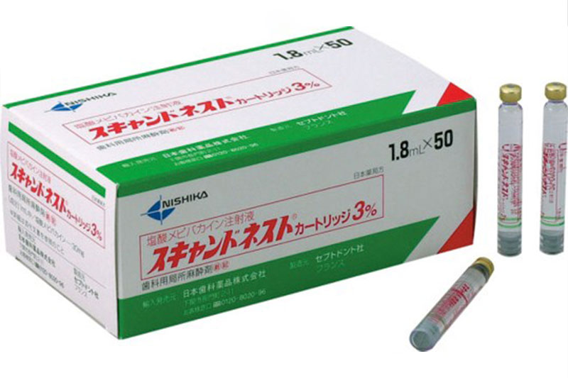 麻酔効果がすぐ現れ、効果時間は2~3時間です。血管収縮剤にアドレナリンが添付されています。